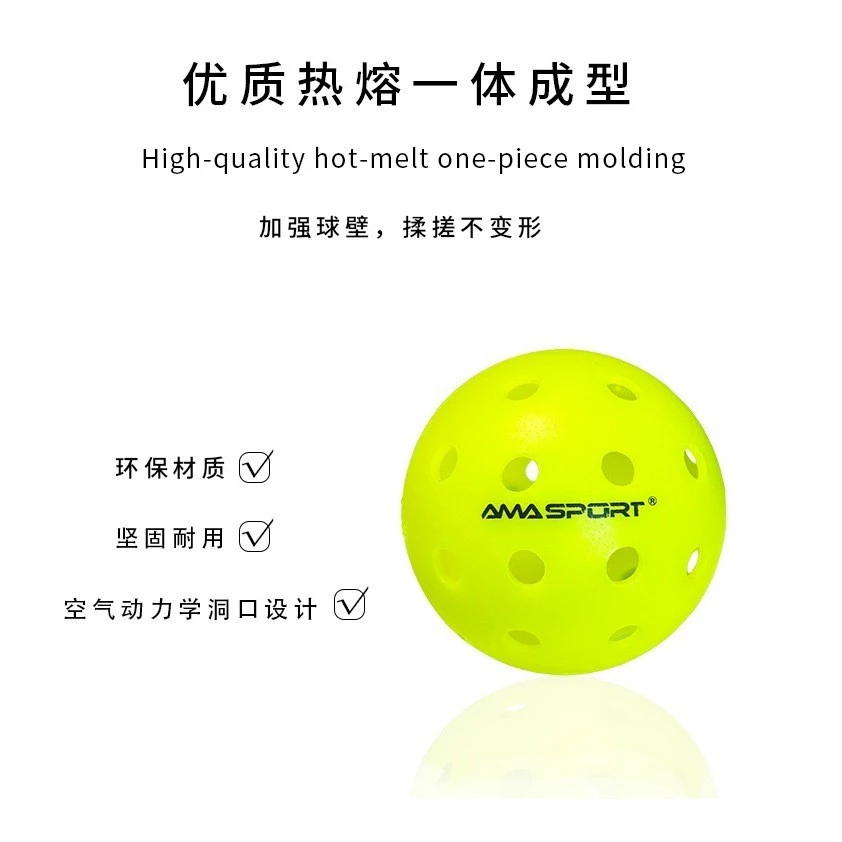 Logo In Sắc Nét: Bóng Pickleball Ama Sport X-Ace40 có logo Ama Sport in rõ ràng, dễ nhận diện, mang lại cảm giác chuyên nghiệp khi tham gia các giải đấu hoặc chơi giải trí.